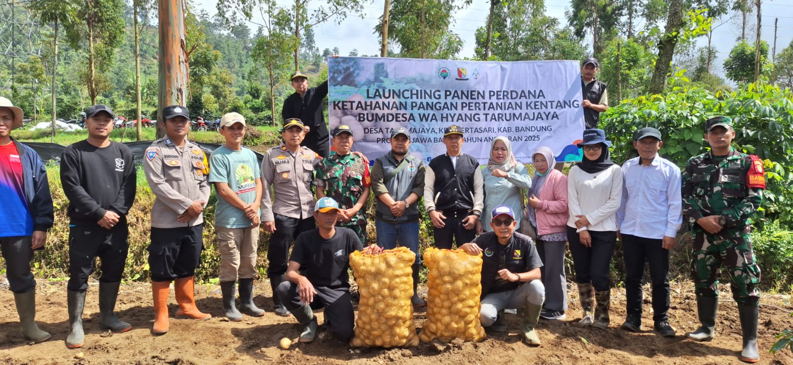 BANDUNGPRAKASA. COM. Kapolsek Kertasari IPTU Fajar Sodik, S.H. bersama Bhabinkamtibmas Desa Tarumajaya menghadiri Launching Panen Perdana sekaligus Panen Raya komoditas kentang yang digagas Bumdesa WA Hyang di Blok Lahan Tarumajaya. Kecamatan. Kertasari Kab. Bandung, Rabu (27/11/2025).