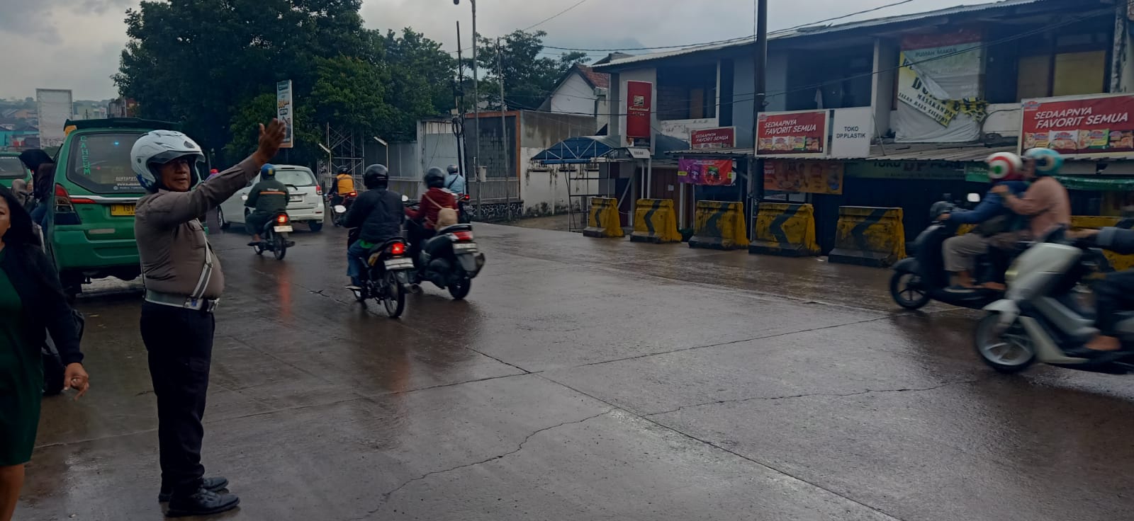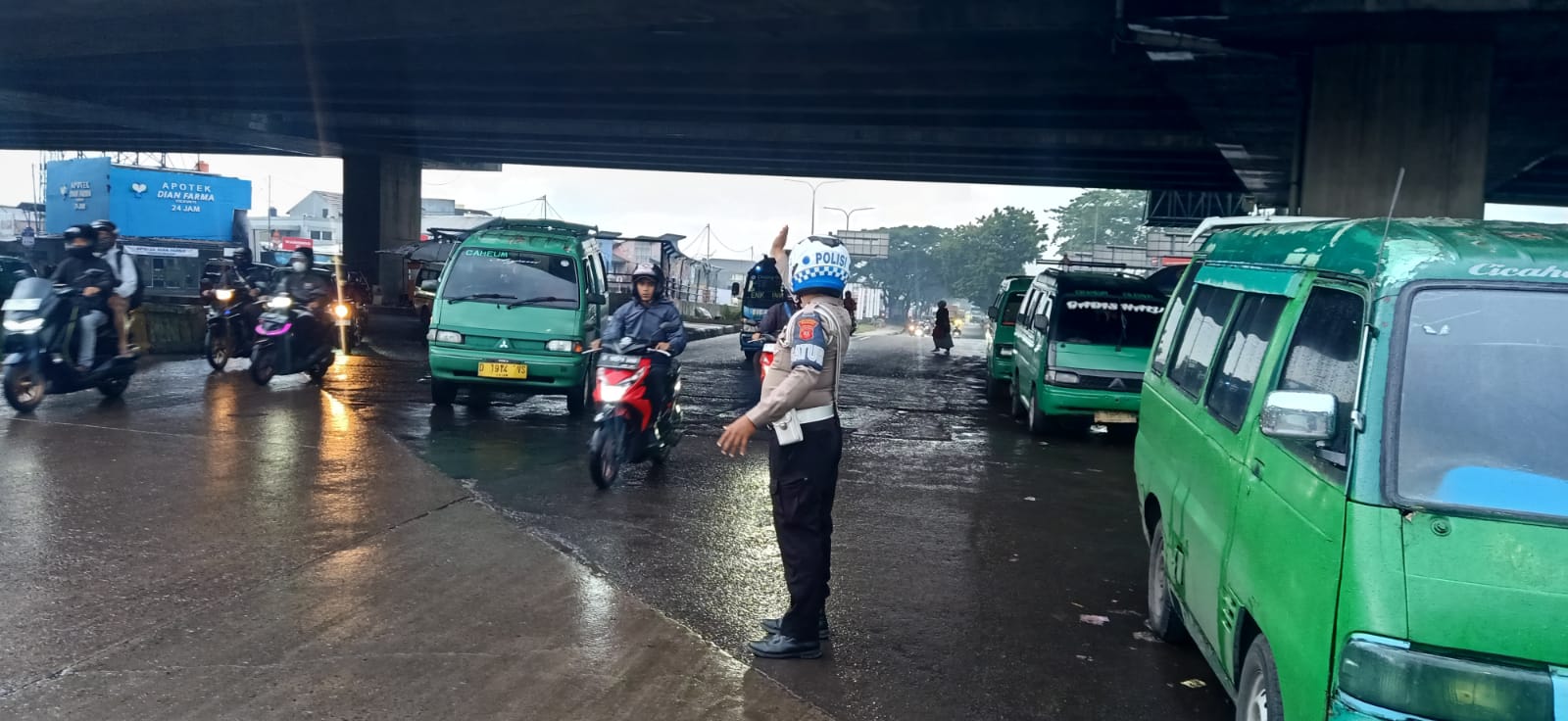 Selain mengurai kepadatan, petugas juga mengimbau para pengendara agar tetap berhati-hati, menjaga jarak aman, serta mematuhi rambu dan arahan petugas, mengingat kondisi jalan yang licin akibat hujan.
