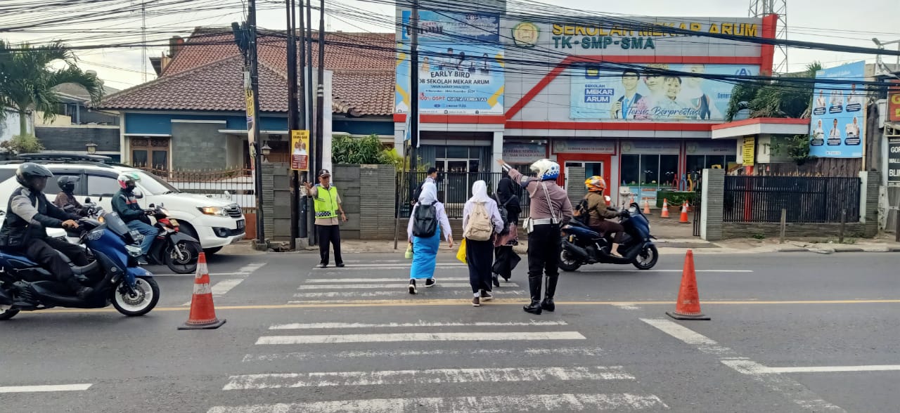 Dalam kegiatan pengaturan arus lalu-lintas di seputaran Sekolah Mekar Arum tidak jarang terlihat petugas membantu menyeberangkan pejalan kaki dan anak sekolah, guna memberikan rasa aman dan nyaman serta mencegah terjadinya kecelakaan lalu lintas.