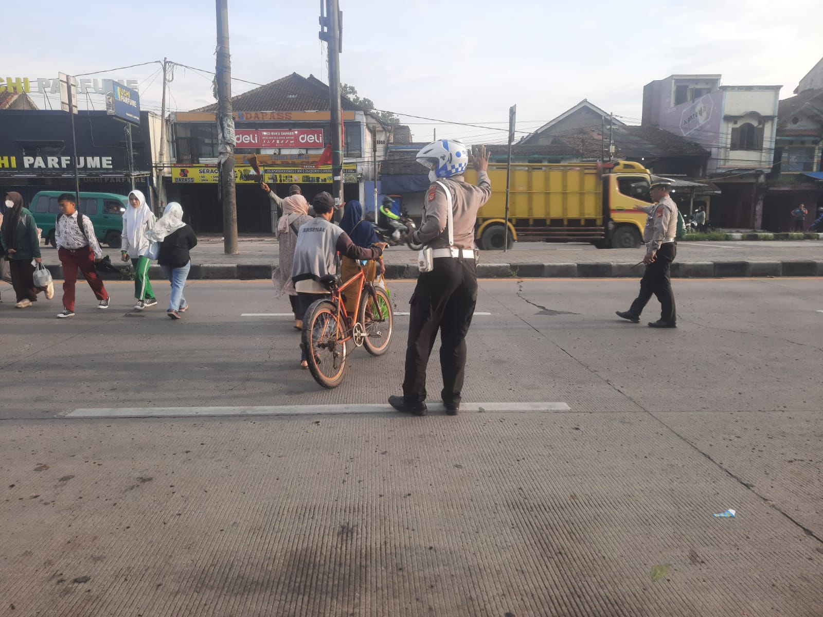 Personil Unit Lantas Polsek Rancaekek laksanakan gatur lantas serta bantu warga menyebrang jalan di sekitar simpang tiga dangdeur, pengaturan lantas oleh Unit Lantas polsek Rancaekek dilaksanakan di beberapa titik rawan macet yang seringkali mengalami kemacetan seperti di Pertigaan Dangdeur.