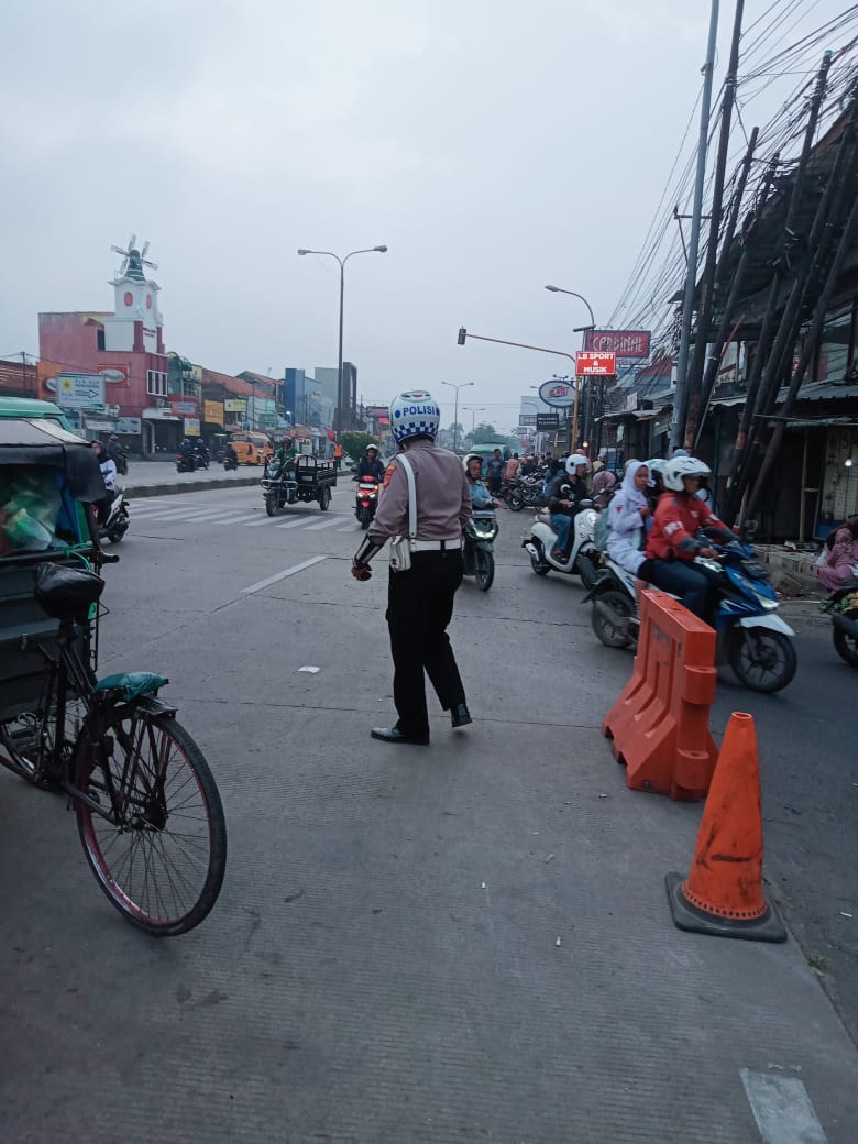 Pastikan aktivitas masyarakat lancar, Unit Lantas Polsek Rancaekek pengaturan lalulintas serta bantu warga penyebranagan jalan