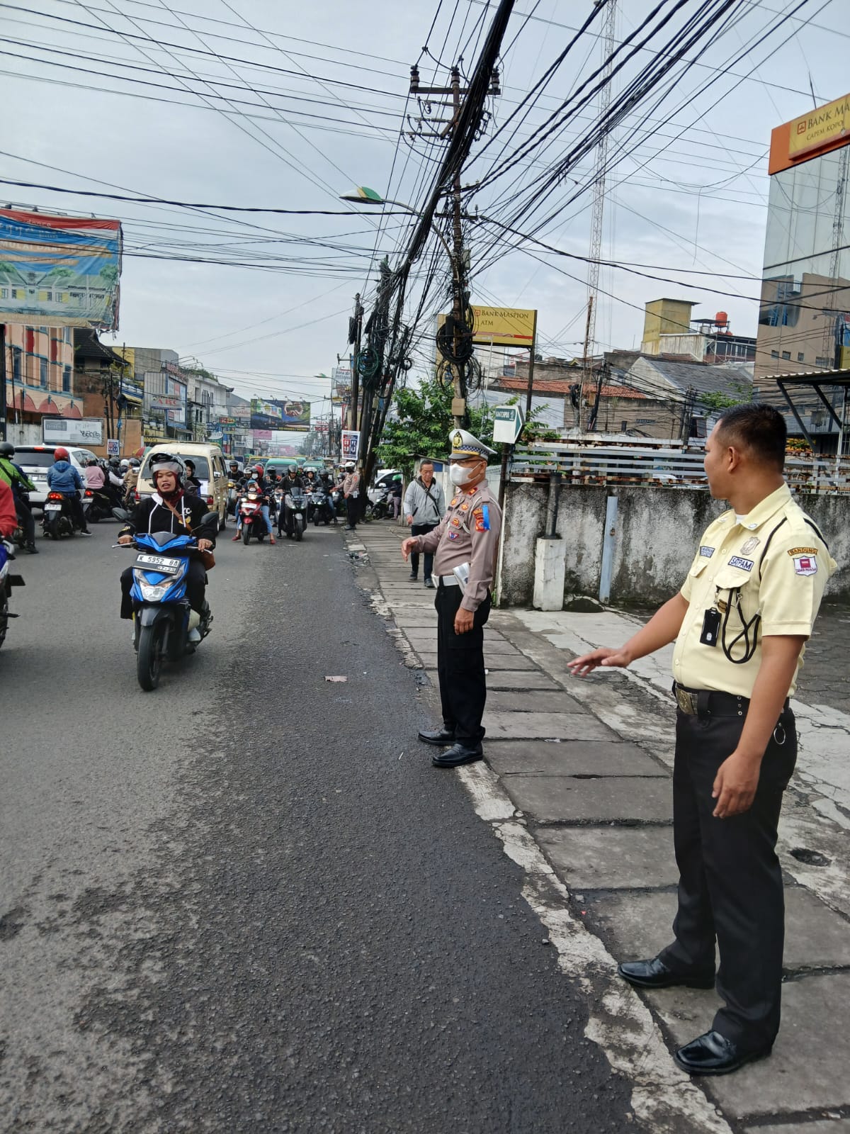 BANDUNG PRAKASA, MARGAHAYU – Personil Unit Lalu Lintas Polsek Margahayu Polresta Bandung tetap menjalankan tugasnya dengan penuh dedikasi dalam melaksanakan pelayanan pengaturan lalu lintas (gatur) pagi.