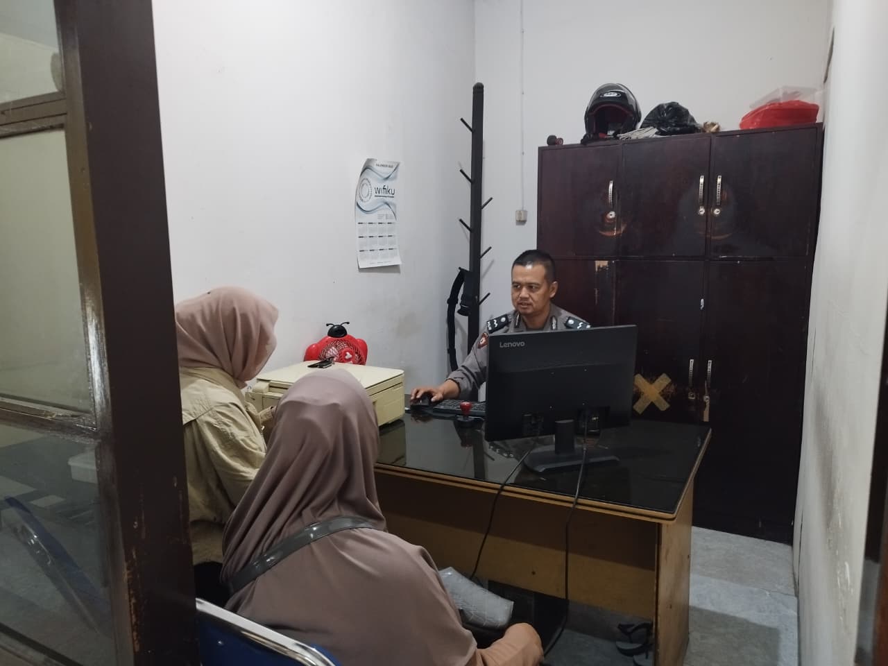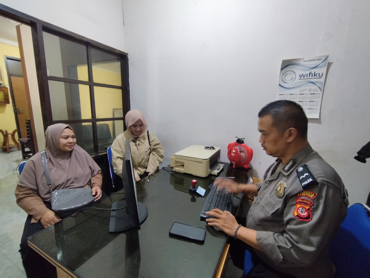 Aipda Ahmad Sugilar terlihat melayani warga dengan sikap ramah dan penuh empati. Ia membantu menjelaskan alur pelaporan, memastikan data yang disampaikan lengkap dan benar, serta membimbing warga hingga Surat Bukti Lapor Kehilangan selesai dibuat.