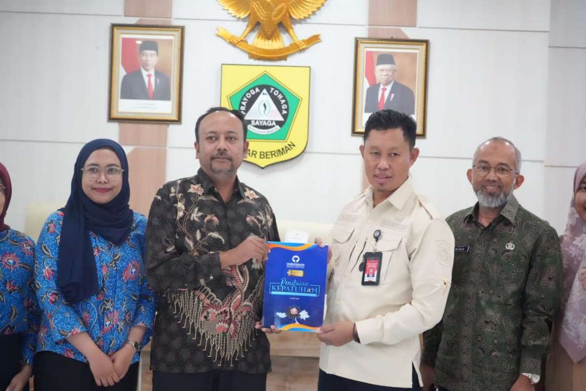 Pj.Bupati Bogor, Asmawa Tosepu menerima hasil penilaian penyelenggaraan pelayanan publik tersebut secara langsung dari Kepala Ombudsman perwakilan Jakarta Raya, Dedy Irsan, di Ruang Rapat Bupati Bogor, Cibinong, Selasa (14/5/2024).