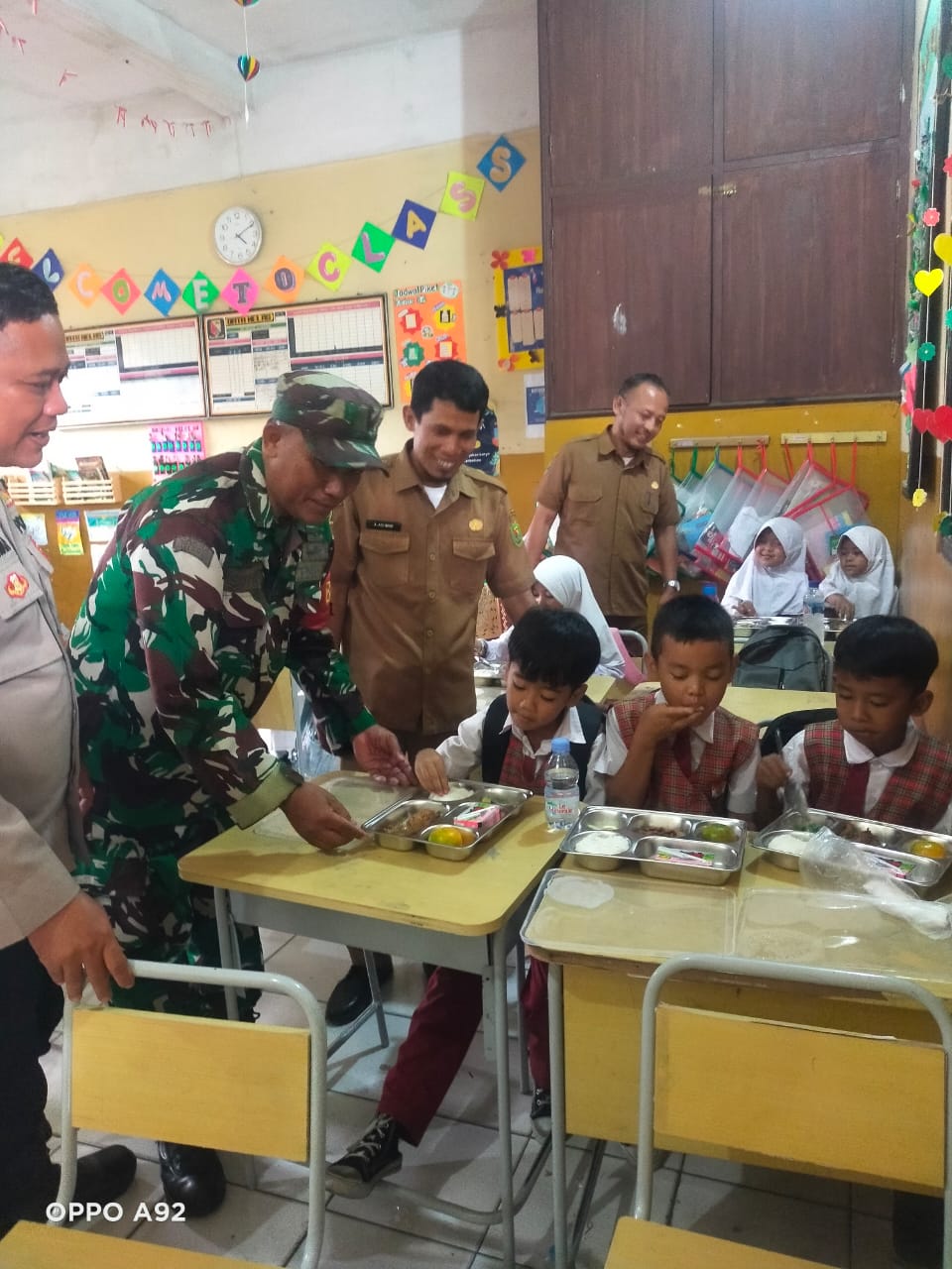 Pendistribusian Makanan Bergizi Gratis (MBG), Bhabinkamtibmas Desa Lengkong melaksanakan monitoring ke Sekolah Dasar