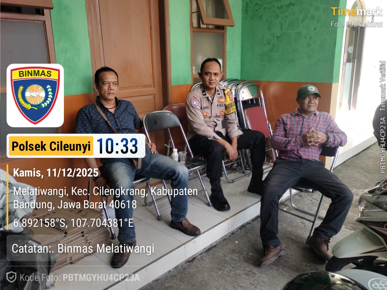 Seperti yang dilakukan Bhabinkamtibmas Desa Melatiwangi, Aipda M. Yasil Nugraha, yang melaksanakan kegiatan duduk bareng bersama Ketua RW 08, Bapak Dodo, di Kp. Bongkor, RW 08, Desa Melatiwangi, Kecamatan Cilengkrang, Kabupaten Bandung. Kamis (11/12/2025)