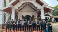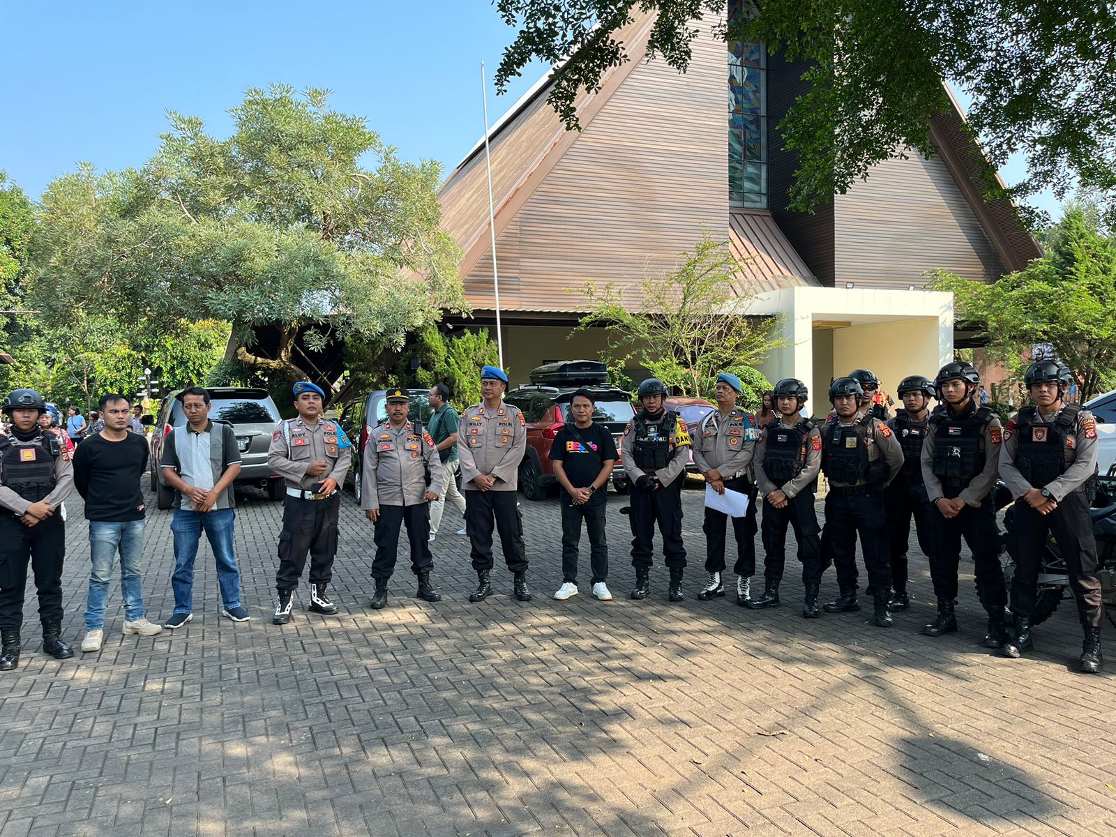 BANDUNG PRAKASA, SUBANG, – Guna mencegah terjadinya hal-hal yang tidak diinginkan saat ibadah peringatan kenaikan Isa Almasih, Personel Polres Subang yang dipimpin langsung oleh Danton Dalmas Aipda Asep Hidayat melakukan pengamanan kebaktian yang berlangsung di