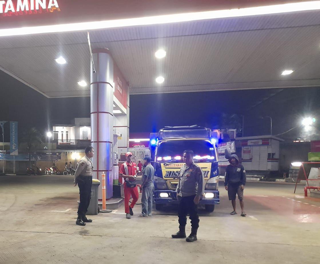 Anggota unit Samapta Polsek Cikancung, Polresta Bandung dalam melaksanakan kegiatan patroli dialogis menyampaikan pesan Kamtibmas kepada petugas SPBU yang berada di wilayah kecamatan Cikancung, Kabupaten Bandung.