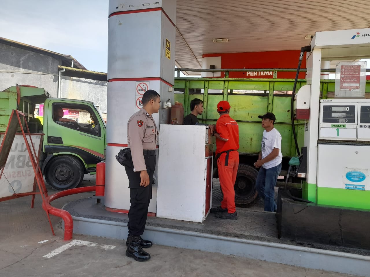 Anggota unit Samapta Polsek Cikancung, Polresta Bandung dalam melaksanakan kegiatan patroli dialogis menyampaikan pesan Kamtibmas kepada petugas SPBU dan Petugas Obvit yang berada di wilayah kecamatan Cikancung, Kabupaten Bandung.