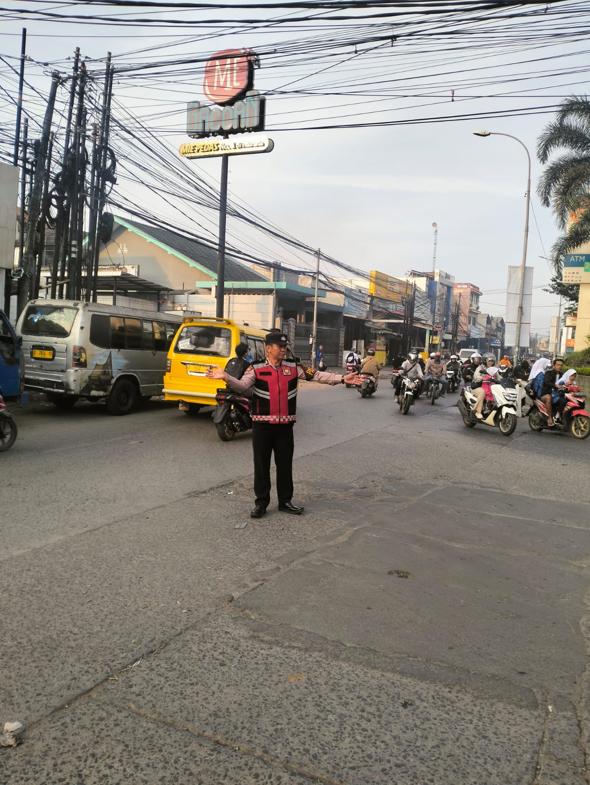 Petugas tampak membantu masyarakat menyeberang jalan, mengurai kemacetan, serta memberikan imbauan kepada pengguna jalan agar tertib dan mengutamakan keselamatan, ujar kapolsek