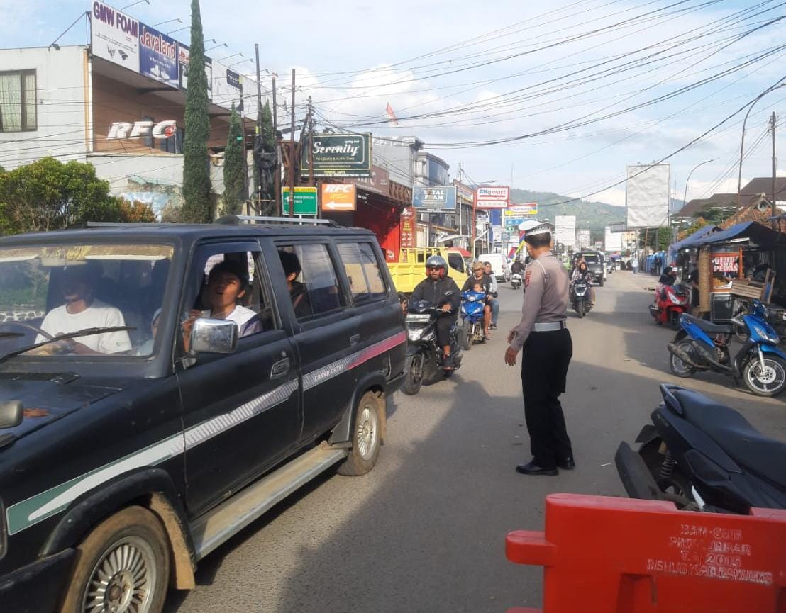 BANDUNG PRAKARSA, PANGALENGAN – Personil unit lantas Polsek Pangalengan Polresta Bandung Polda Jawa Barat laksanakan pelayanan pengaturan lalu lintas pada pagi hari guna jamin kelancaran arus dan keselamatan pengguna jalan.