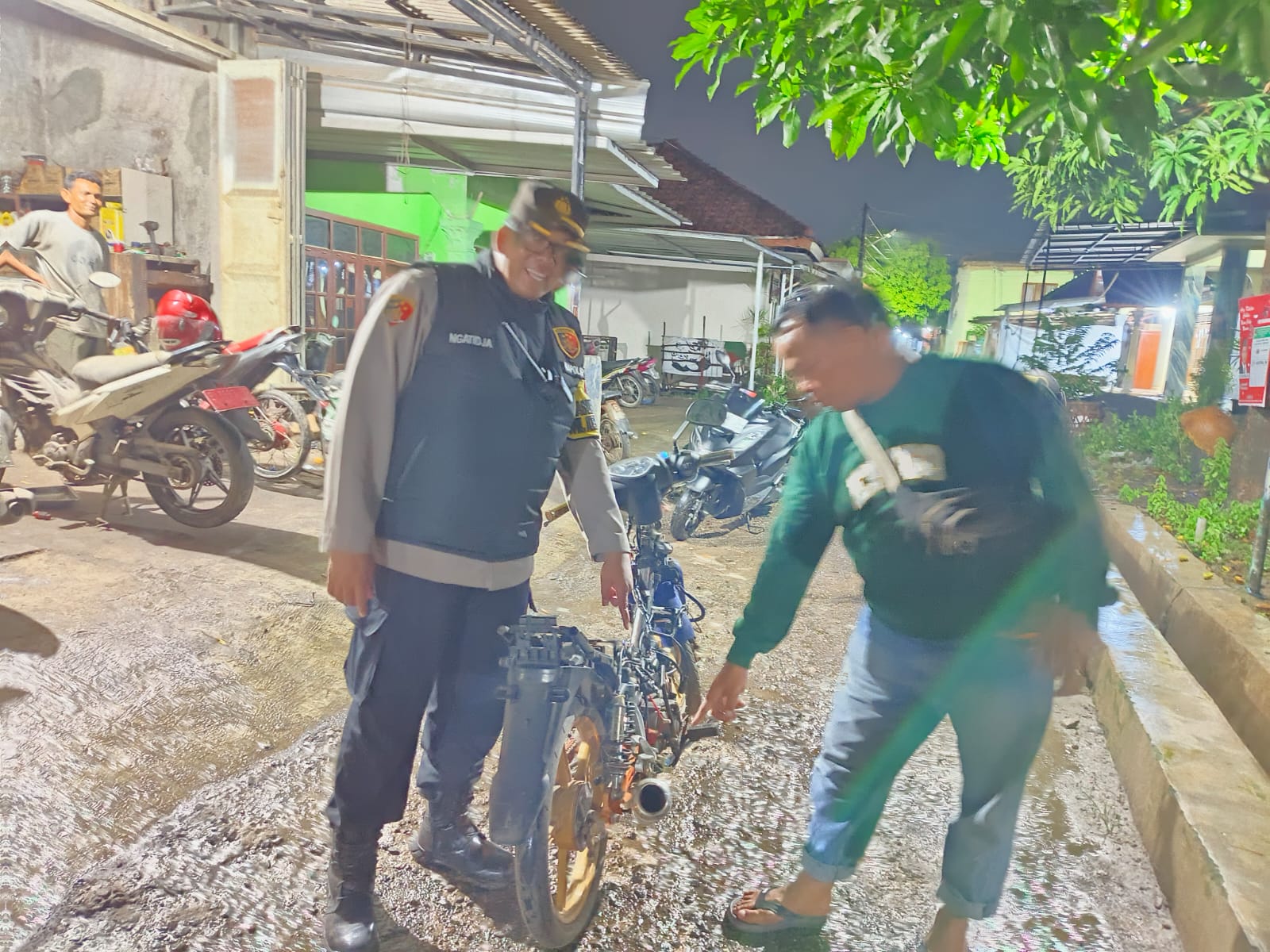 BANDUNG PRAKASA.COM, Klangenan, 24 Januari 2024 – Kapolsek Klangenan, AKP Ngatidja, bersama anggota polisi, melakukan langkah preventif dengan menyambangi bengkel motor di malam hari sebagai upaya edukasi terhadap pemilik bengkel. Kegiatan ini melibatkan kerjasama dengan mandor desa, yang ikut menyisir setiap gang untuk memastikan bengkel yang masih buka 24 jam tidak memasang knalpot Brong.