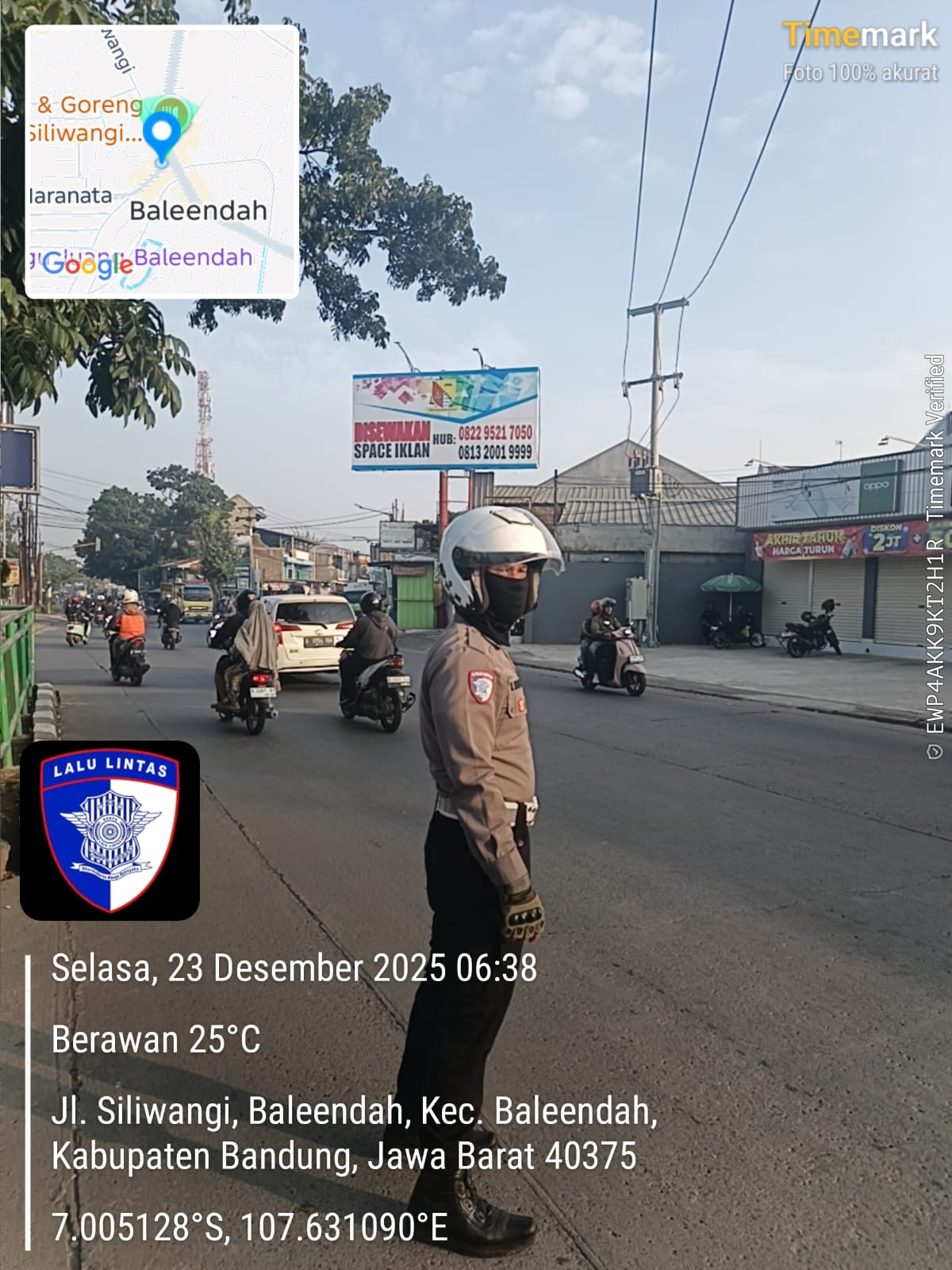 BANDUNGPRAKASA. COM. Baleendah – (23/12/2025) Piket Unit Lalu Lintas Polsek Baleendah melaksanakan pelayanan pengaturan arus lalu lintas di Simpang Siliwangi, Kecamatan Baleendah, Kabupaten Bandung, guna menjaga kelancaran dan keamanan pengguna jalan.