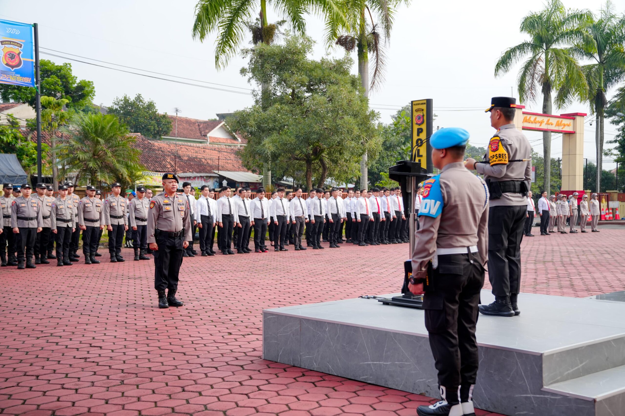 Upacara yang dimulai pukul 07.30 WIB hingga 08.45 WIB tersebut dipimpin langsung oleh Kapolresta Bandung Kombes Pol Aldi Subartono, S.H., S.I.K., M.H., CPHR, selaku Inspektur Upacara, dan diikuti oleh Pejabat Utama (PJU), para perwira, seluruh personel Polresta Bandung, serta pengurus Bhayangkari Cabang Kota Bandung.