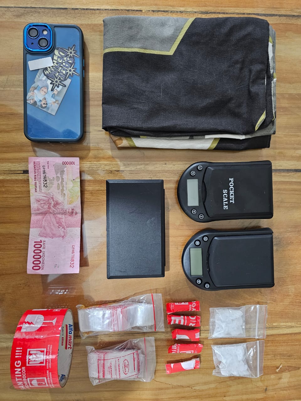 Kapolresta Cirebon, Kombes Pol Sumarni, S.I.K, S.H, M.H, mengatakan, jajarannya turut mengamankan sejumlah barang bukti dari tangan tersangka. Diantaranya 2 paket sabu yang beratnya mencapai 15,62 gram, 5 paket sabu seberat 3,43 gram, handphone, timbangan digital, sepeda lipat, dan lainnya.