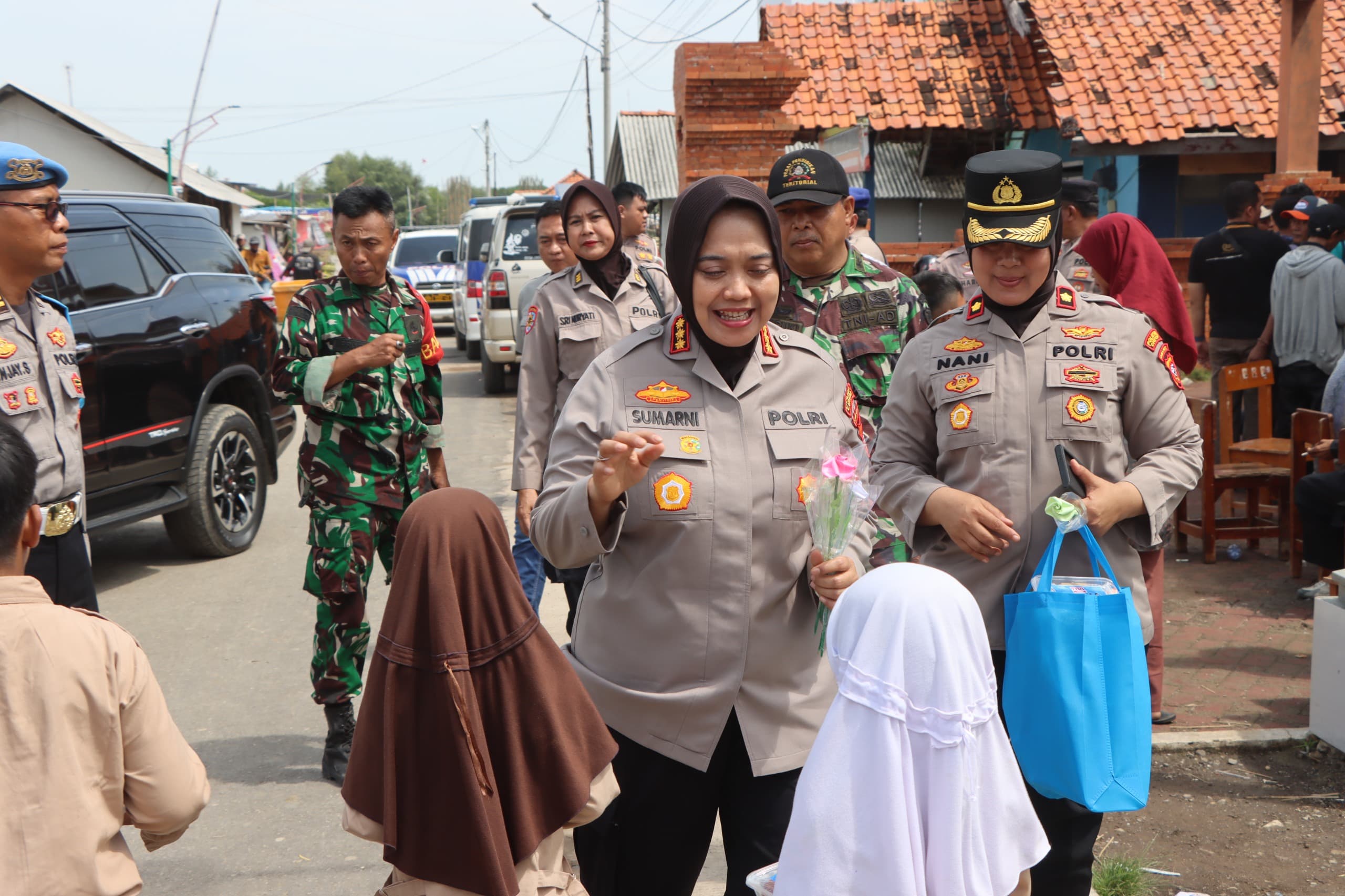 BANDUNG PRAKARSA, Polresta Cirebon menggelar bakti sosial (baksos) di sekolah yang terdampak banjir rob, Jumat (10/1/2025). Kegiatan yang dipimpin langsung Kapolresta Cirebon, Kombes Pol Sumarni, S.I.K, S.H, M.H, tersebut dilaksanakan di SDN 3 Ambulu Kecamatan Losari Kabupaten Cirebon.
