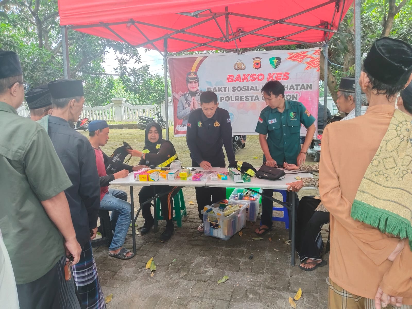 Kasi Dokkes Polresta Cirebon, AKP Ilyas, S.Sos., bersama timnya hadir langsung memberikan pelayanan kesehatan kepada jamaah salat Jumat dan masyarakat sekitar. Layanan yang diberikan meliputi pemeriksaan tensi darah, pengobatan ringan, serta pemberian obat sesuai dengan keluhan yang dirasakan warga.