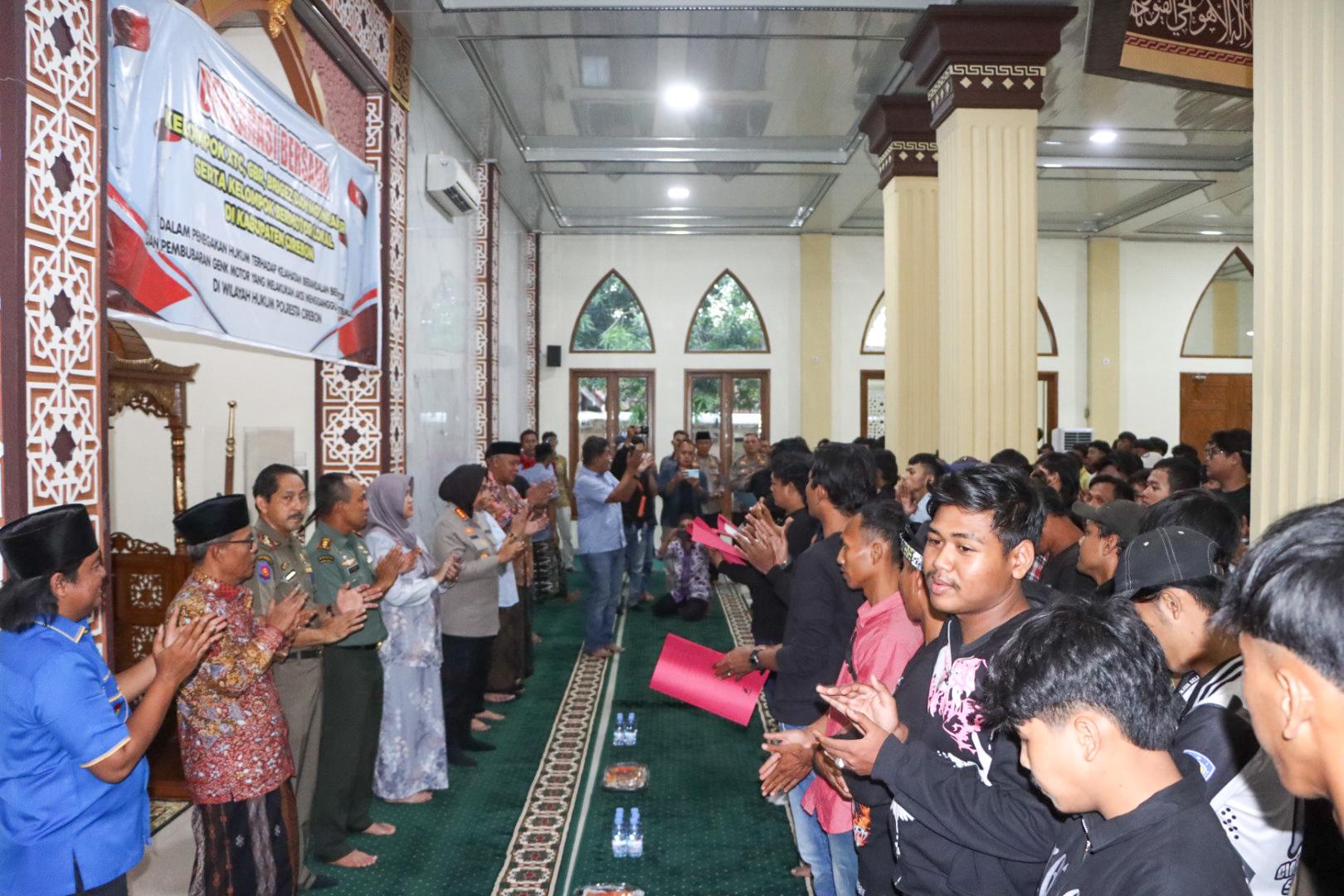 Deklarasi ini menjadi momentum strategis yang dihadiri langsung oleh Kapolresta Cirebon, Kombes Pol. Sumarni, S.I.K., S.H., M.H., bersama unsur Forkopimda Kabupaten Cirebon, tokoh agama, tokoh masyarakat, serta berbagai kelompok geng motor dan konten yang selama ini kerap meresahkan warga.