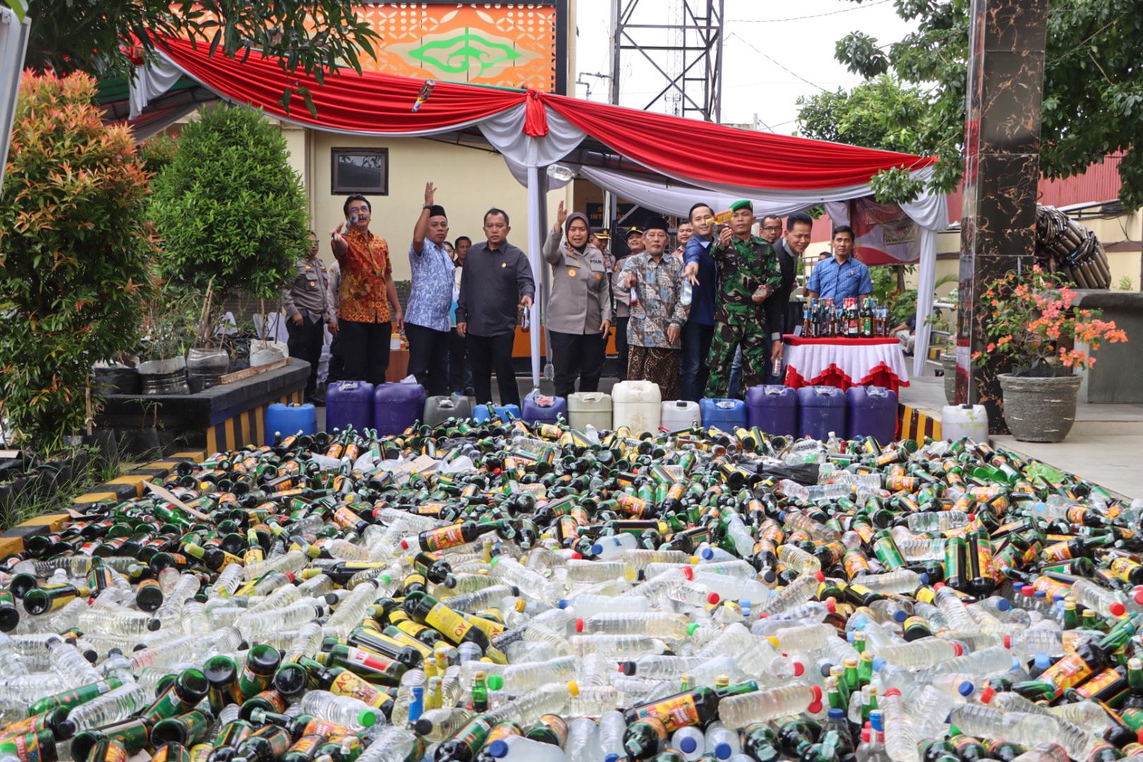 Ia mengatakan, jumlah miras yang dimusnahkan dalam kegiatan kali ini terdiri dari berbagai merk minuman keras pabrikan sebanyak 1.997 Botol, minuman keras tradisional jenis ciu sebanyak 3.345 botol, dan minuman keras tradisional jenis tuak sebanyak 667 Liter.