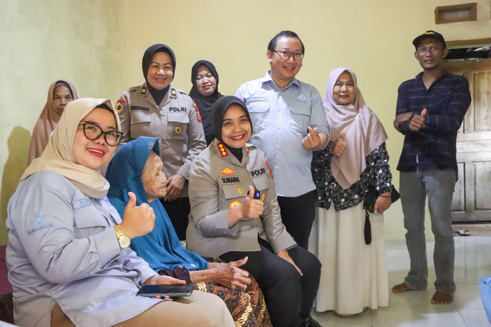 Perjalanan kemudian berlanjut ke Desa Sidawangi. Di Blok Seureuhbeureum, rumah milik Ibu Asriah (80) yang telah selesai direnovasi diresmikan langsung oleh Kapolresta. Wajah Ibu Asriah tampak haru ketika menerima bantuan perlengkapan rumah tangga seperti kasur, bantal, sprei, dispenser, serta paket sembako. Warga sekitar pun ikut menyaksikan momen tersebut, menciptakan suasana hangat dan penuh rasa syukur.