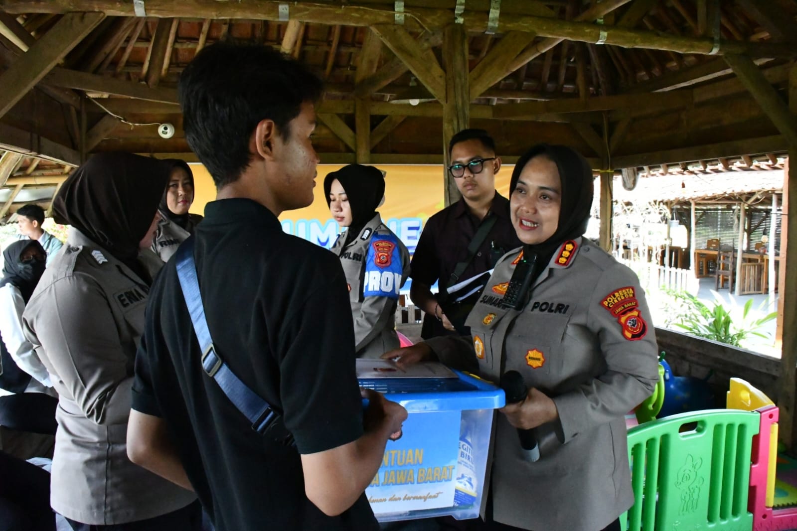 Bertempat di Rumah Makan Bageur Tengkleng, Desa Sampiran, Kecamatan Talun, Kabupaten Cirebon, kegiatan yang berlangsung pada Senin siang ini menjadi wujud nyata solidaritas Polri terhadap masyarakat yang sedang dalam kesulitan. Di bawah kepemimpinan Kapolresta Cirebon KOMBES POL Sumarni, S.I.K., S.H., M.H., bantuan disalurkan secara langsung kepada para keluarga korban dalam suasana haru dan penuh kehangatan.