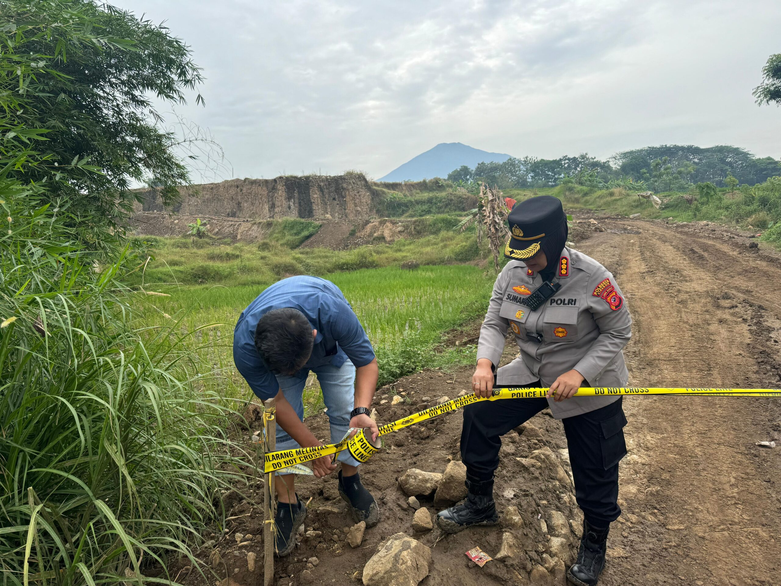 Guna mencegah risiko bencana alam seperti longsor yang berpotensi menimbulkan korban jiwa, Polresta Cirebon langsung menutup lokasi dan memasang garis polisi sebagai langkah preventif.