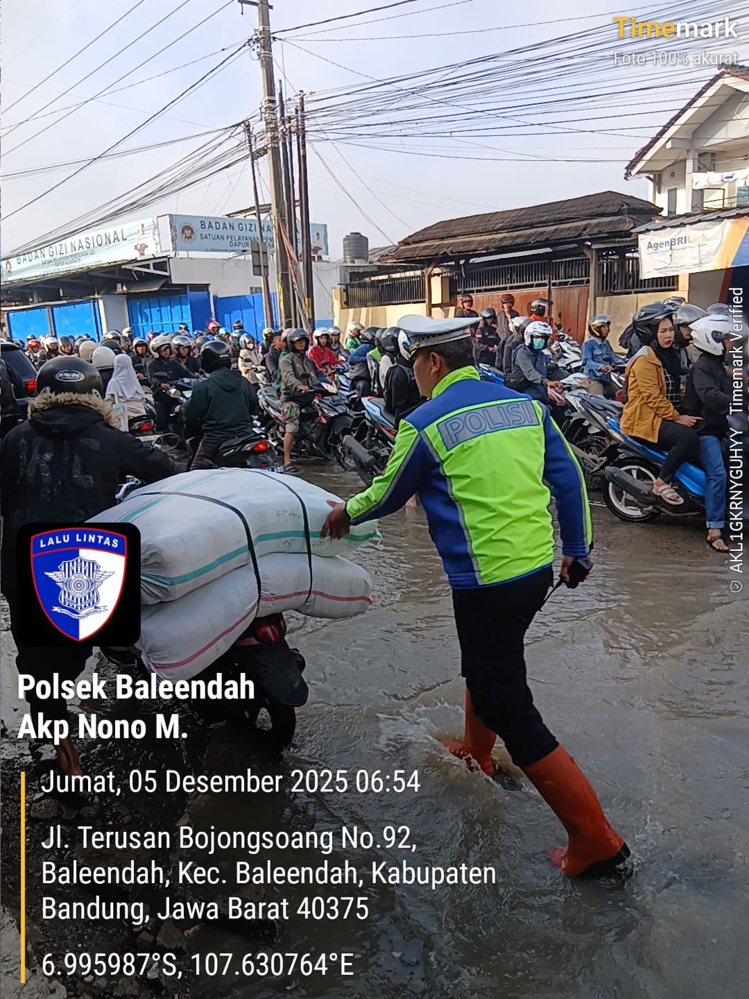 Melihat situasi tersebut, petugas Polsek Baleendah sigap turun tangan melakukan pengaturan arus lalu lintas untuk mencegah kemacetan panjang, serta membantu warga mendorong kendaraan yang mengalami kendala.