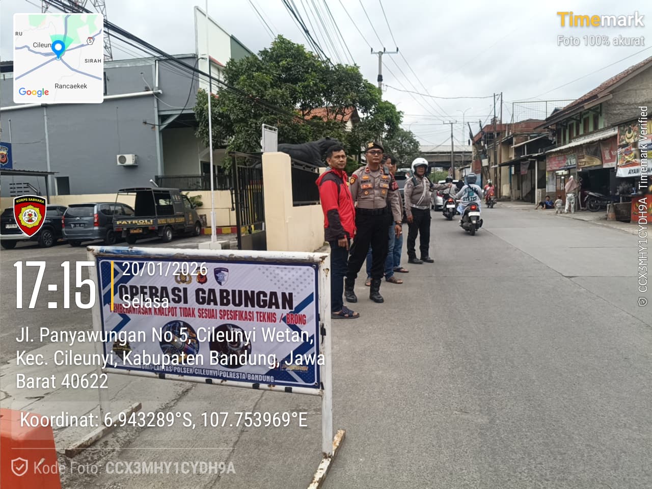 Kegiatan operasi tersebut digelar di Jalan Panyawungan, Desa Cileunyi Wetan, Kecamatan Cileunyi, Kabupaten Bandung, tepatnya di depan Mapolsek Cileunyi. Operasi ini dipimpin langsung oleh Kanit Reskrim Polsek Cileunyi Iptu Wawan Sofyan, S.Sos, didampingi Panit Samapta Ipda Eko Novi Samiyanto, bersama gabungan piket fungsi Polsek Cileunyi. Selasa (20/1/2026)