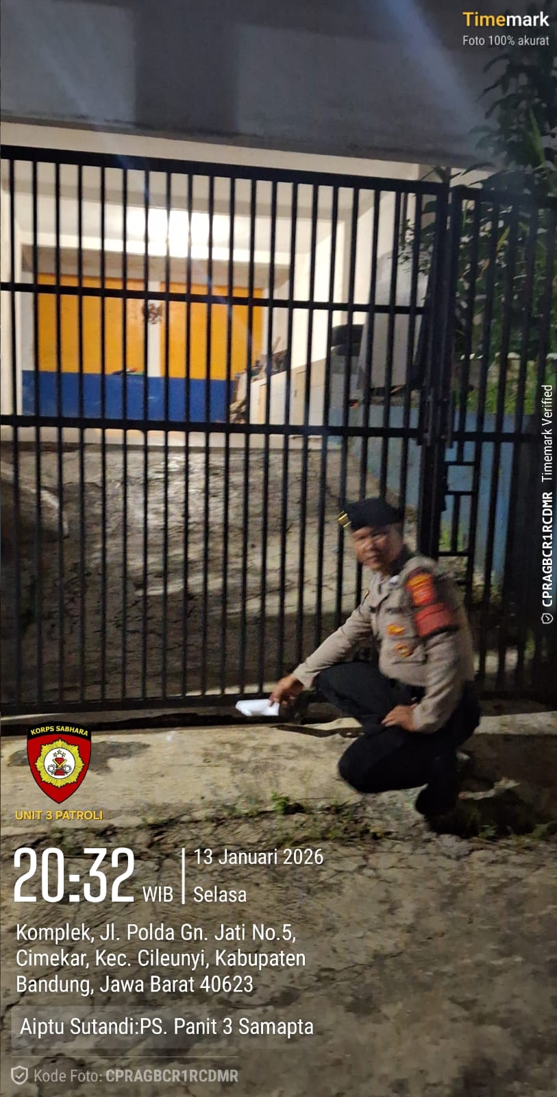 Kegiatan patroli malam tersebut dilaksanakan oleh Unit Samapta Aiptu Sutandi, bersama Bhabinkamtibmas Aiptu Dadan Ramdan dan Aiptu Haris Mugia Kusumah. Patroli menyasar kawasan pemukiman, jalan utama, serta titik-titik yang dinilai rawan gangguan kamtibmas.