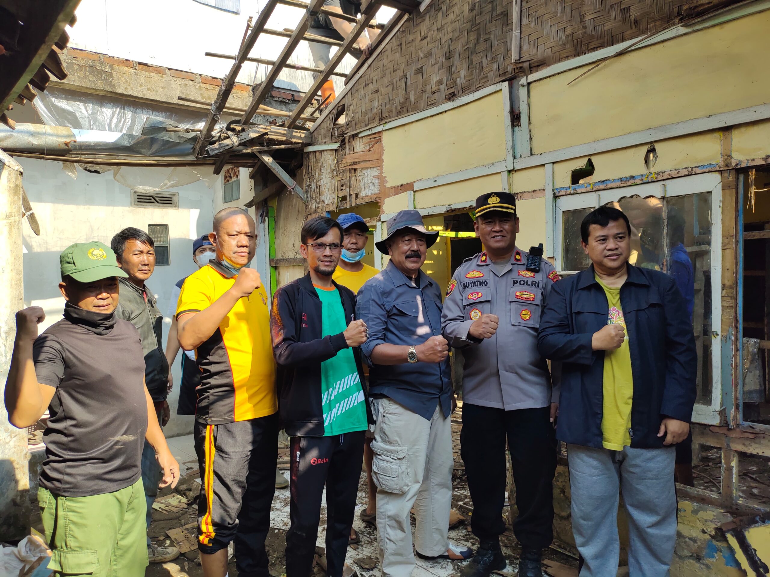 Selanjutnya dilakukan pembongkaran rumah lama secara gotong royong oleh anggota Polsek Majalaya bersama warga sekitar, sebagai tahap awal renovasi rumah.