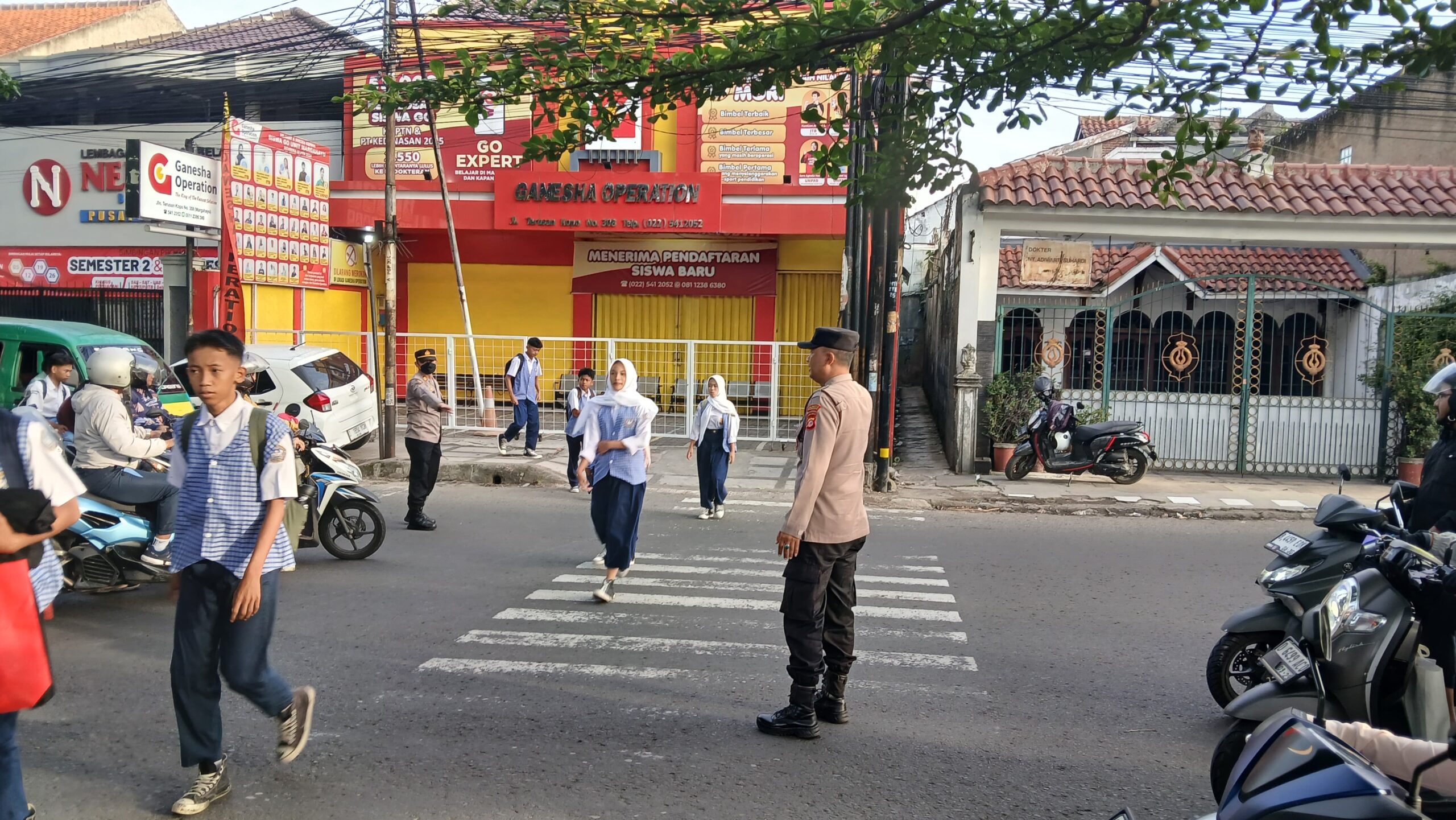 BANDUNGPRAKASA. COM. Pada Selasa, 25 November 2025 pukul 06.00 WIB, Polsek Margahayu melaksanakan kegiatan pelayanan masyarakat (Yanmas) berupa pengaturan lalu lintas pagi di depan SMPN 1 Margahayu, Jl. Raya Kopo No. 397, Kelurahan Sulaiman, Kecamatan Margahayu, Kabupaten Bandung. Kegiatan ini dilaksanakan oleh personel gabungan Unit Samapta dan Bhabinkamtibmas Polsek Margahayu.