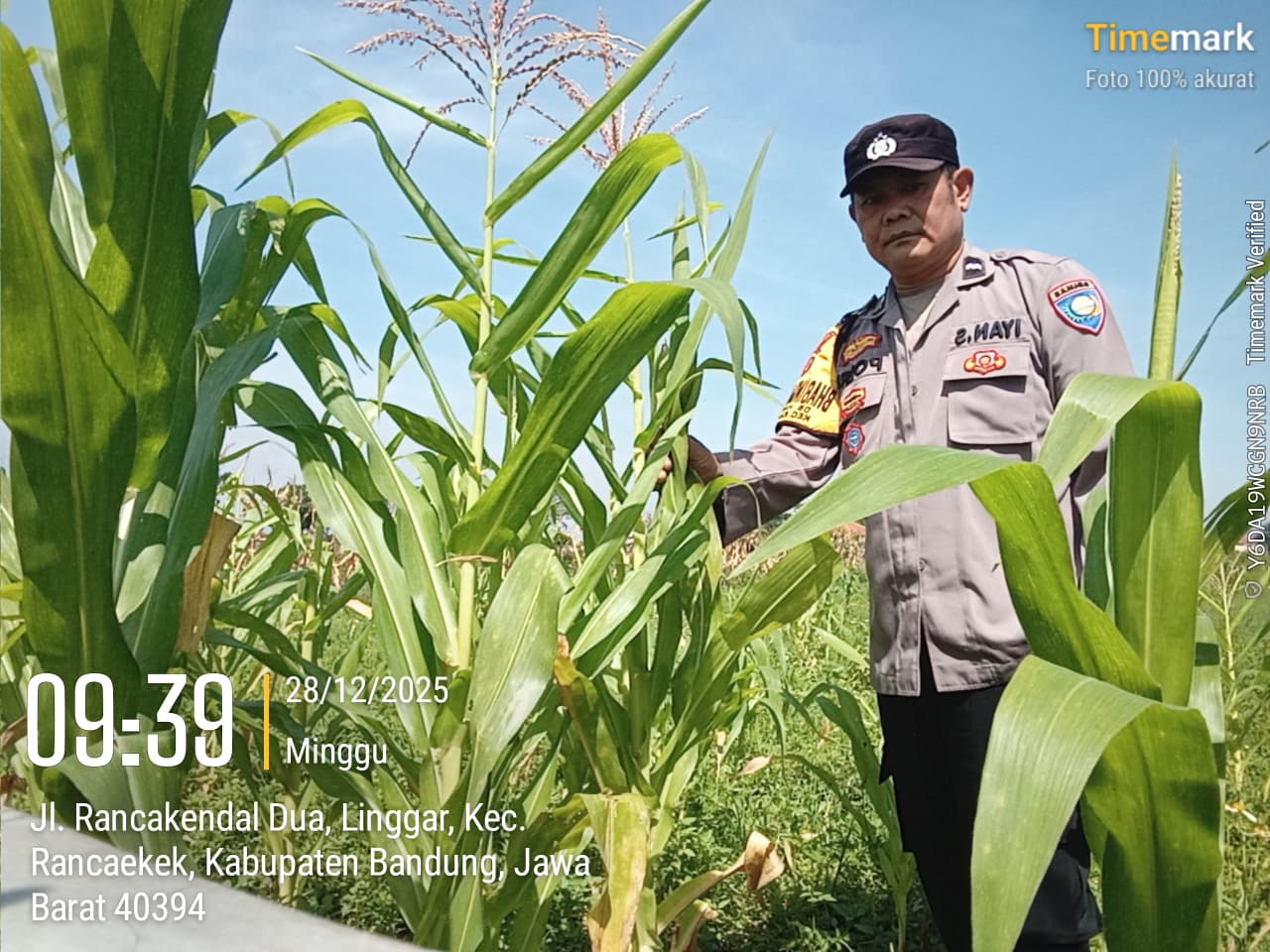 BANDUNGPRAKASA. COM. Polsek Rancaekek Polresta Bandung terus mendukung program ketahanan dan swasembada pangan nasional melalui kegiatan monitoring dan pemeliharaan lahan pertanian jagung hibrida di wilayah Kecamatan Rancaekek, Kabupaten Bandung. Kegiatan ini dilaksanakan pada Minggu (28/12/2025) di lahan Non LBS yang berada di Blok Rancakeong Kampung Bangkuang, Desa Linggar.