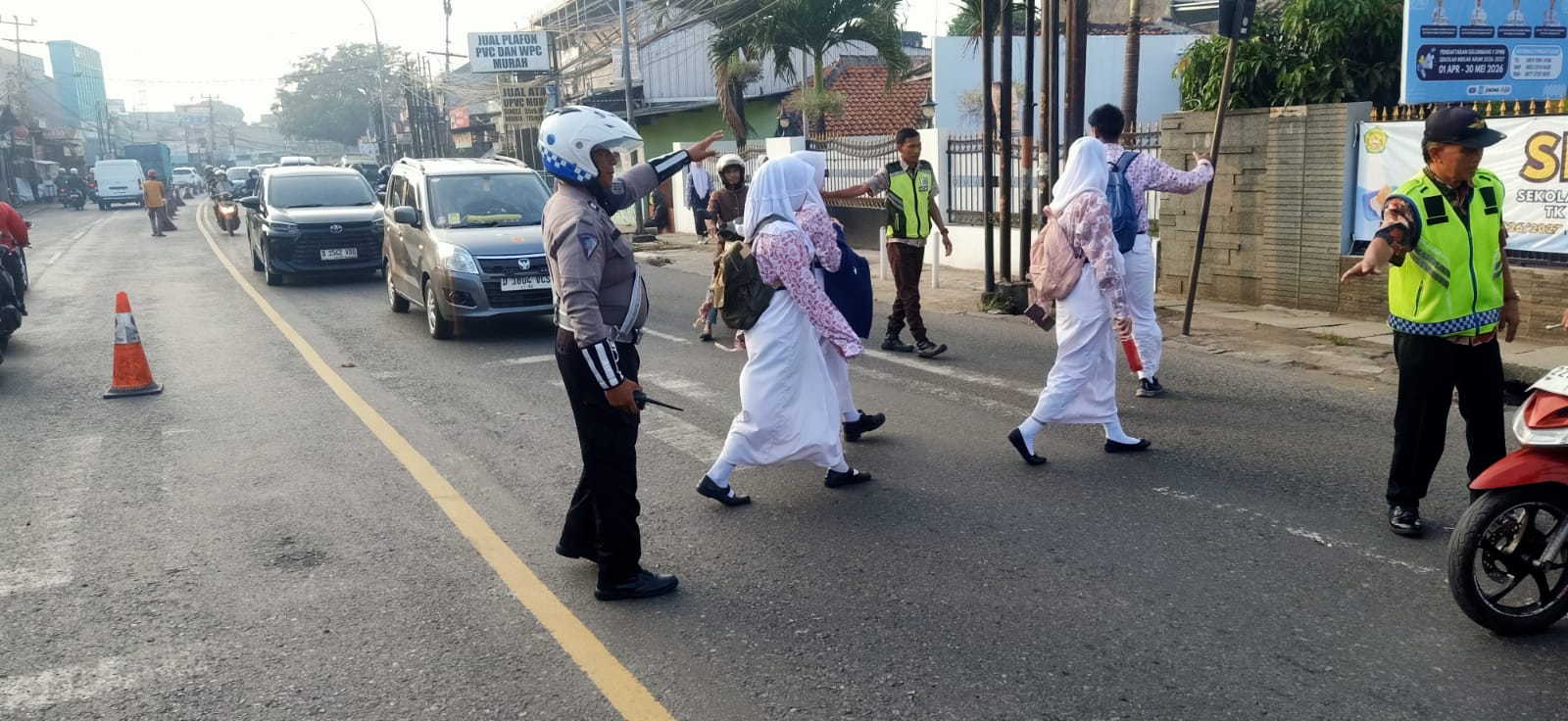 Sejak pagi hari, arus kendaraan di kawasan tersebut tampak ramai dipadati oleh kendaraan pribadi, angkutan umum, serta orang tua yang mengantar anak-anaknya ke sekolah. Tingginya mobilitas ini berpotensi menimbulkan kepadatan bahkan risiko kecelakaan lalu lintas, khususnya bagi para pelajar yang hendak menyeberang jalan.
