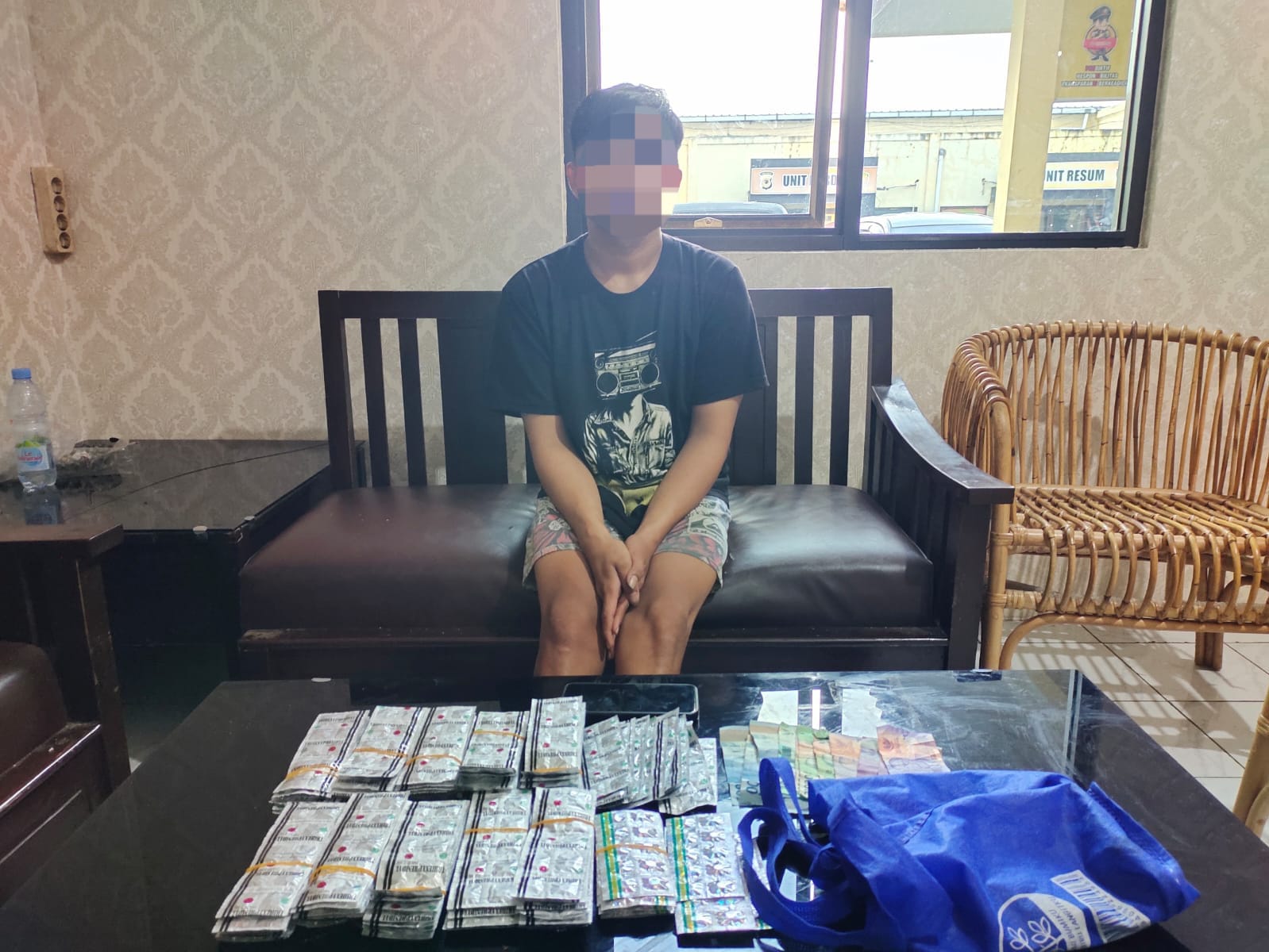 Dari tangan tersangka, polisi menyita sejumlah barang bukti berupa 150 butir obat jenis Tramadol, 1.119 butir Trihexyphenidyl, uang tunai sebesar Rp320.000, satu buah kantong plastik berwarna biru bertuliskan “Indomaret”, serta satu unit handphone merk Oppo warna biru dongker beserta SIM card-nya.