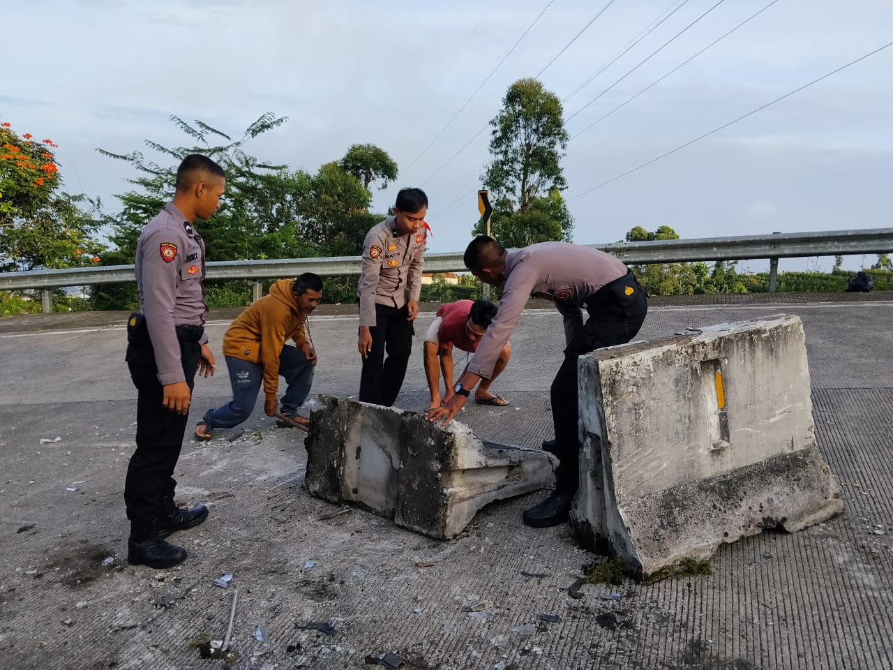 Atas laporan dari warga masyarakat ke Call center 110 Polsek Ibun adanya kejadian kecelakaan lalu-lintas tunggal yang menambrak Pembatas Jalan atas Laporan tersebut Personil Pospam Cukang Monteng Ibun Polresta Bandung lakukan pengecekan dan evakuasi.
