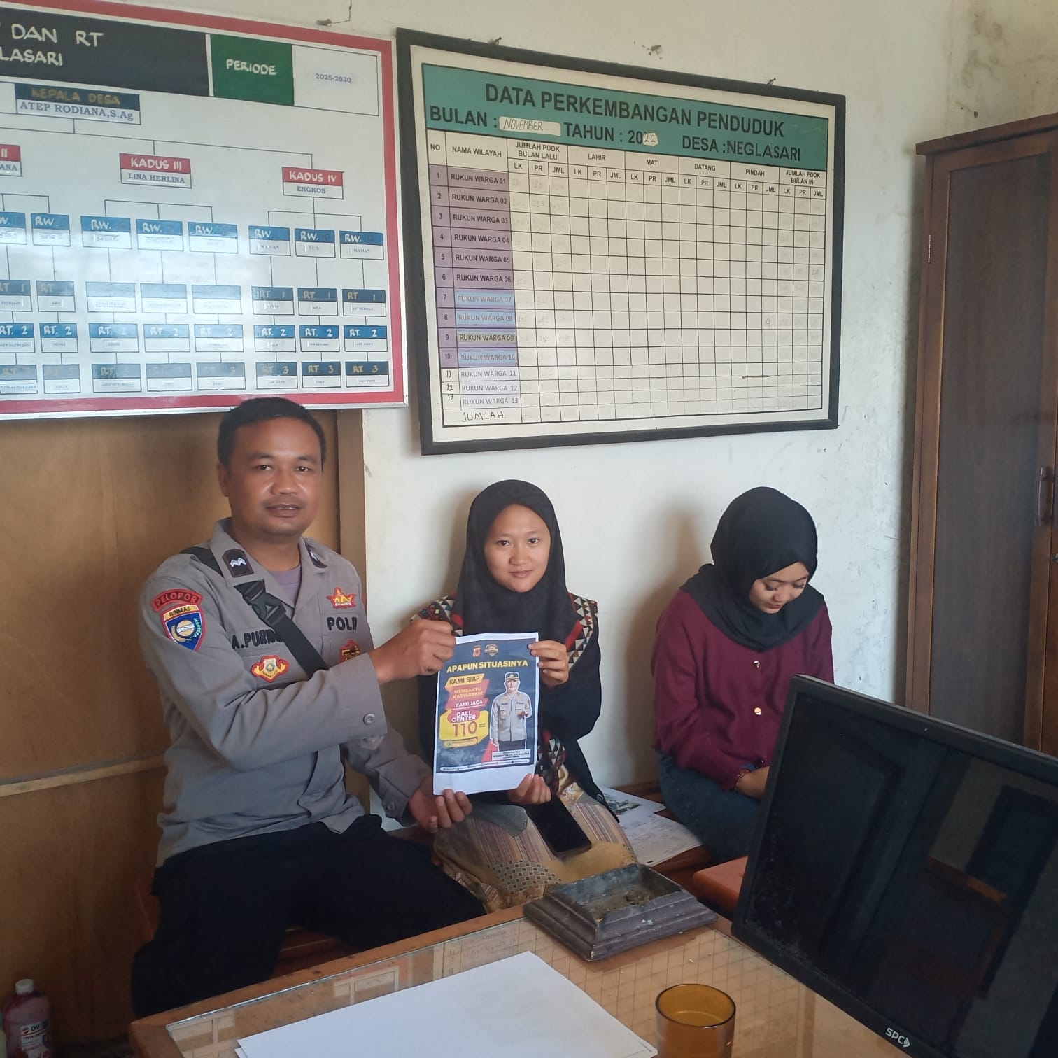 BANDUNG PRAKASA.COM, Polresta Bandung, – Salah Satu upaya mewujudkan situasi kamtibmas yang aman dan kondusif sekaligus sebagai sarana silaturahmi dengan berbagai elemen yang ada di masyarakat, Bhabinkamtibmas Desa Neglasari, Polsek Ibun, Polresta Bandung Aipda Agus Purnama melaksanakan kegiatan sambang dan sosialisasi Call Center Polri 110 kepada Masyarakat Desa dan berikan himbauan kamtibmas.Selasa, 17/06/2025.