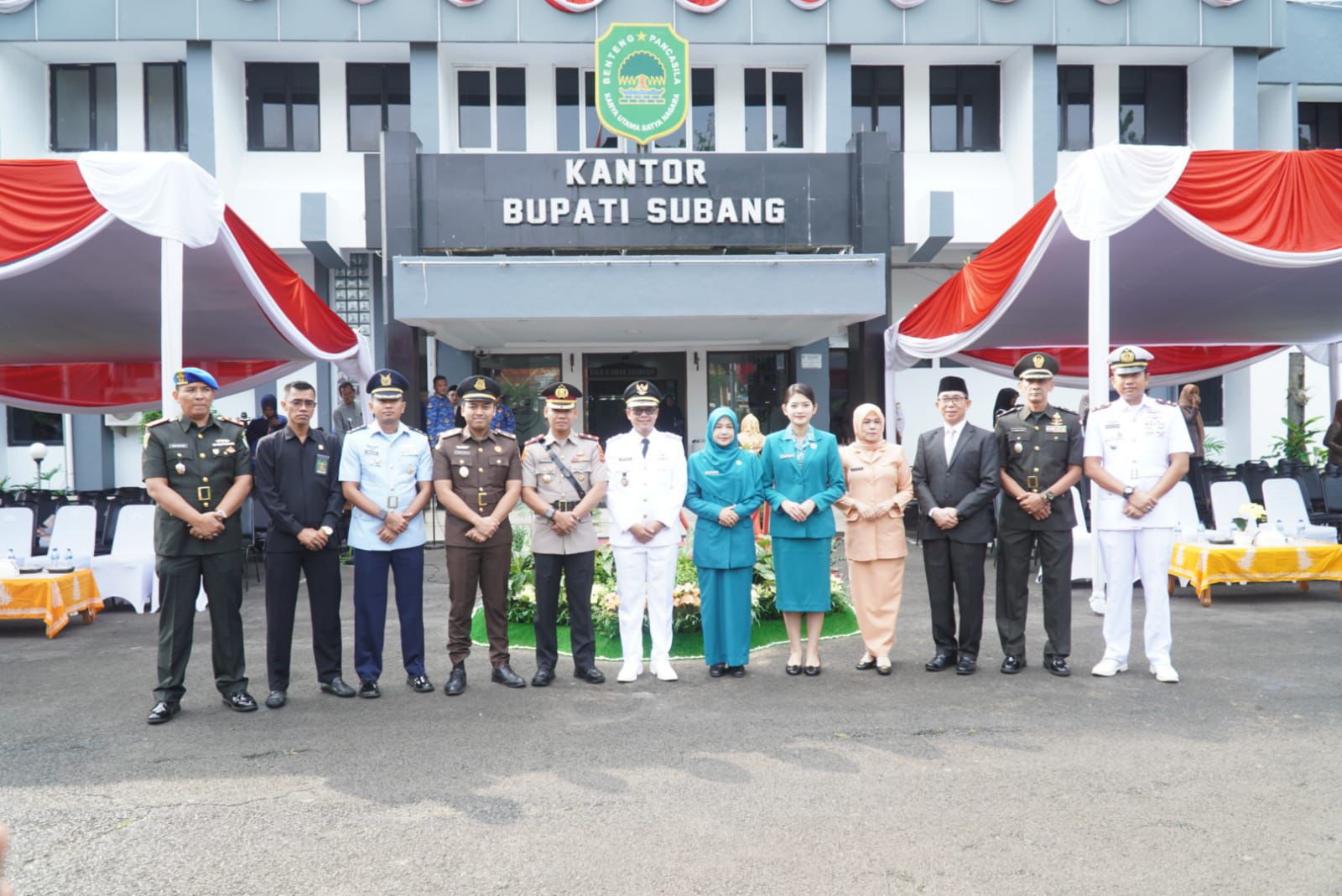 Upacara dipimpin langsung oleh Wakil Bupati Subang, Agus Masykur Rosyadi, S.Si., MM., dan turut dihadiri oleh sejumlah pejabat Forkopimda dan tokoh penting daerah, di antaranya Wakapolres Subang KOMPOL Endar Supriyatna, S.Kom., S.I.K., Kasdim 0605/Subang Mayor Inf R. Nurbiantoro, SE., MM., Ketua DPRD Kab. Subang Victor Wirabuana Abdurachman, S.H., Sekda H. Asep Nuroni, S.Sos., M.Si., serta para pimpinan instansi vertikal dan tamu undangan lainnya.