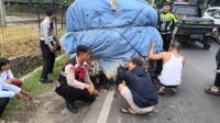 Kanit Samapta Polsek Cangkuang Bantu Evakuasi Pick Up Yang Patah As Roda Belakang