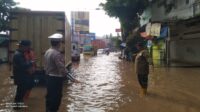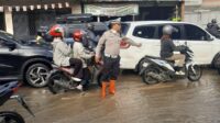 Personel Unit Lantas Polsek Dayeuhkolot Berikan Pelayanan di Titik Genangan Jalan Moh Toha