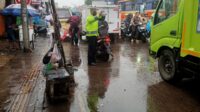Meski Diguyur Hujan, Unit Lantas Polsek Dayeuhkolot Tetap Laksanakan Gatur Lalin Pagi