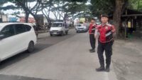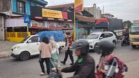 Antisipasi Jam Pulang Kerja, Anggota Unit Samapta Polsek Cileunyi Atur Lalu Lintas Sore di Depan Pasar Sehat Cileunyi