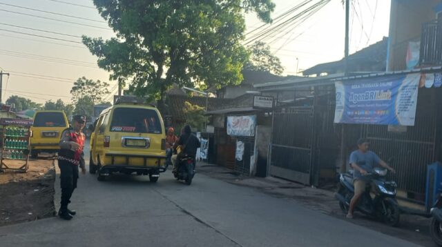 Saat Giat Yanmas : Anggota Unit Samapta Polsek Pacet Polresta Bandung Berharap Kelancaran Arus Lalin Pagi