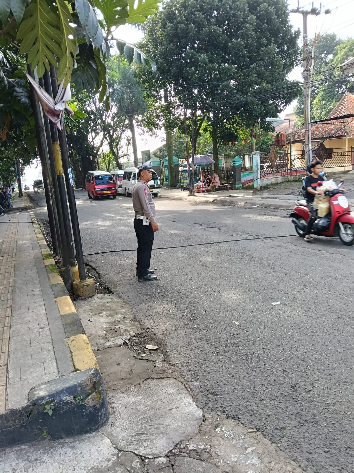 Petugas Unit Lantas dengan sigap melakukan pengamanan lokasi serta pengaturan arus lalu lintas guna mencegah terjadinya kemacetan maupun potensi kecelakaan. Berkat respons cepat tersebut, situasi arus lalu lintas di sekitar lokasi tetap berjalan aman, lancar, dan terkendali.