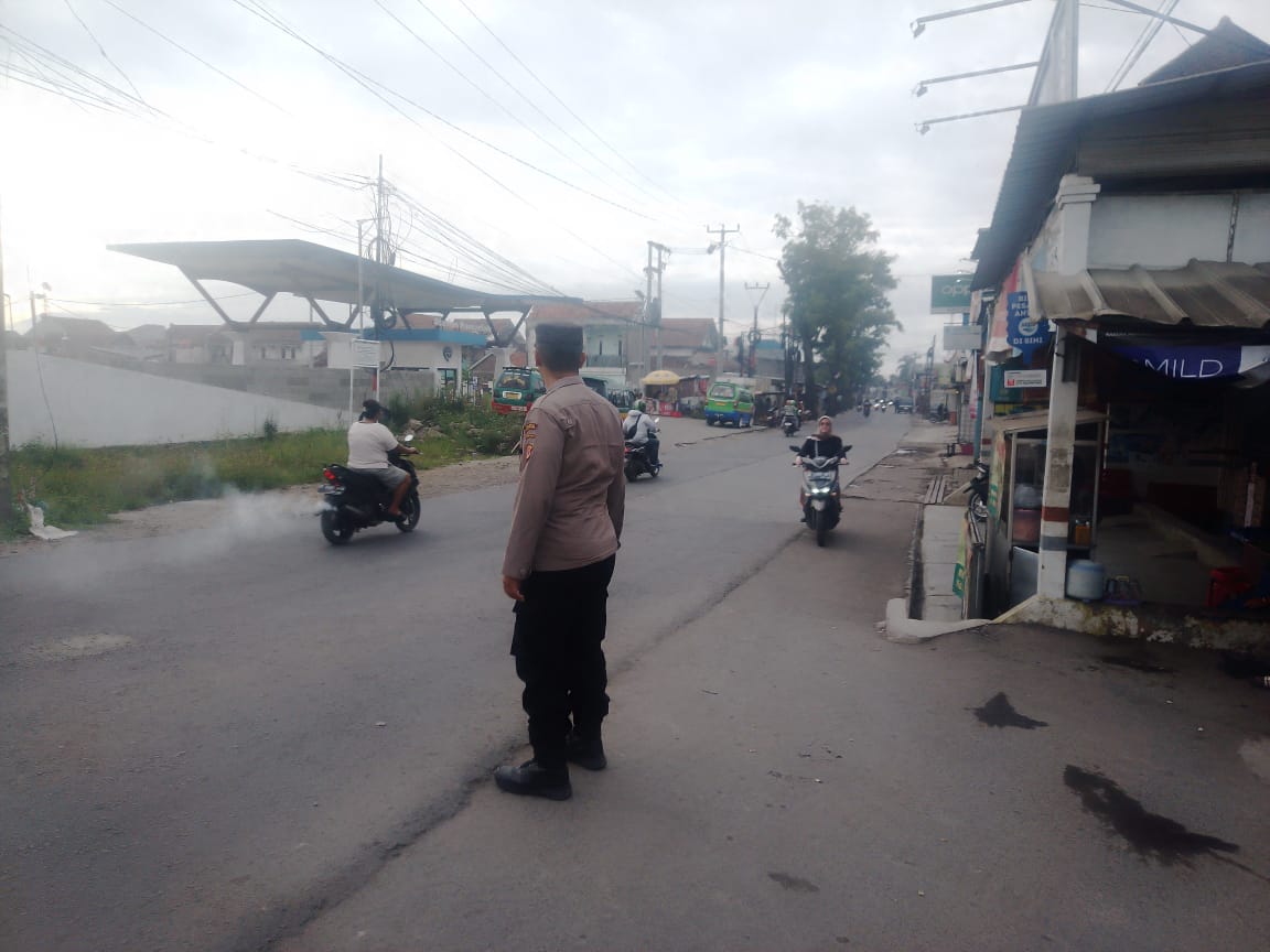 Personil unit samapta Polsek Rancaekek pelayanan pagi pengaturan lau lintas antisipasi kemacetan di sekitar perlintasan KA Rancaekek sebagai tindakan nyata dalam melayani, mengayomi dan melindungi masyarakat