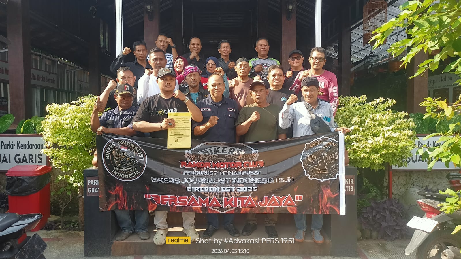 BANDUNGPRAKASACOM.Kabupaten Cirebon, Dewan Pimpinan Pusat Organisasi Bikers Journalist Indonesia ( DPP BJI) resmi terbentuk dalam sebuah acara Rapat Koordinasi dan Halal Bihalal antar sesama Jurnalis yang digelar di RM Griya Dahar Cibiuk, Plumbon, Kabupaten Cirebon pada Jum’at, 3 April 2026.