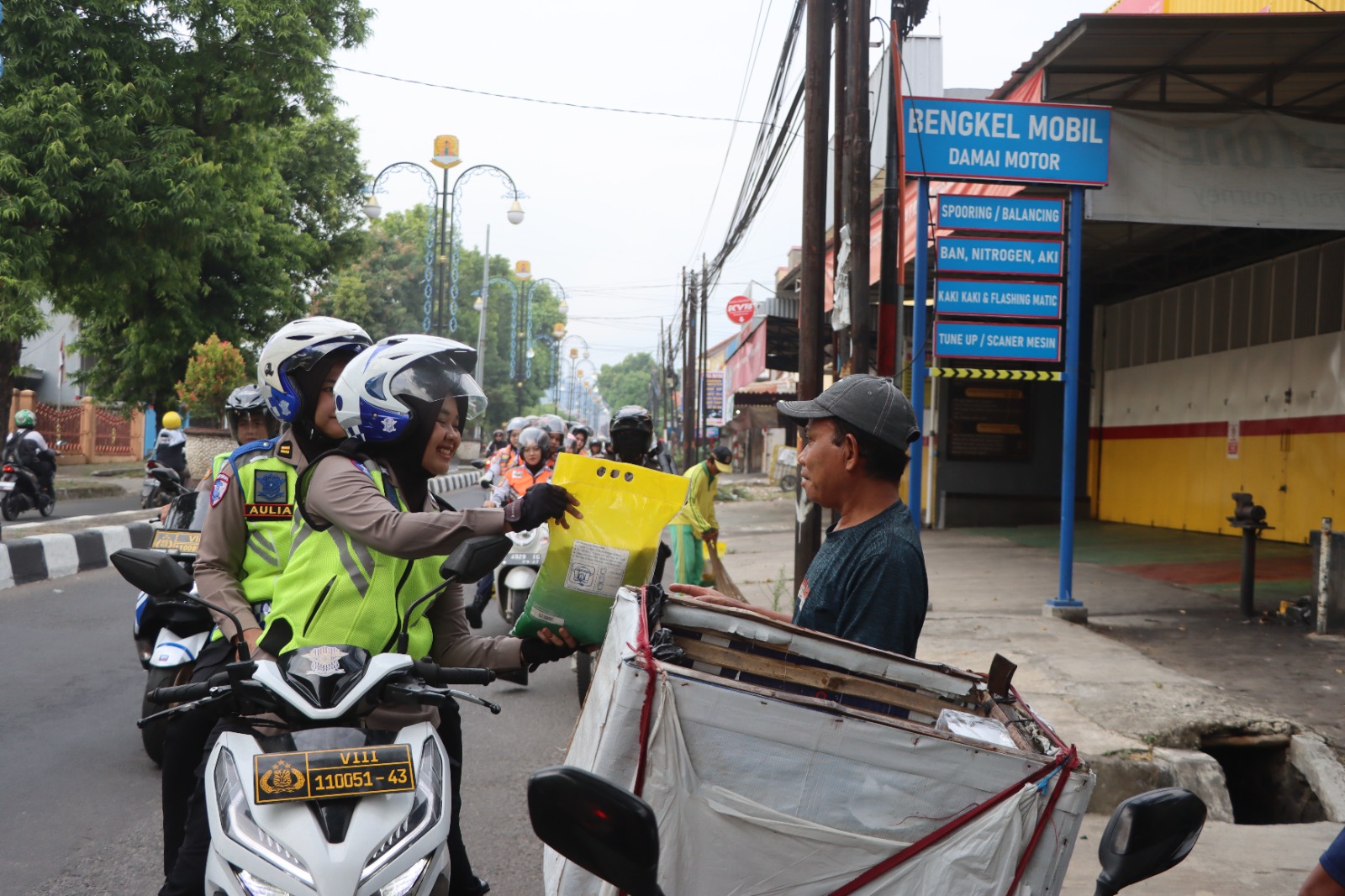 Selain patroli, kegiatan ini juga diwarnai dengan aksi sosial pembagian 100 paket sembako berupa beras 5 kilogram kepada masyarakat di sepanjang jalur patroli. Sasaran utama penerima bantuan adalah para pengemudi ojek online, ojek pangkalan, tukang becak, hingga masyarakat kecil yang membutuhkan.