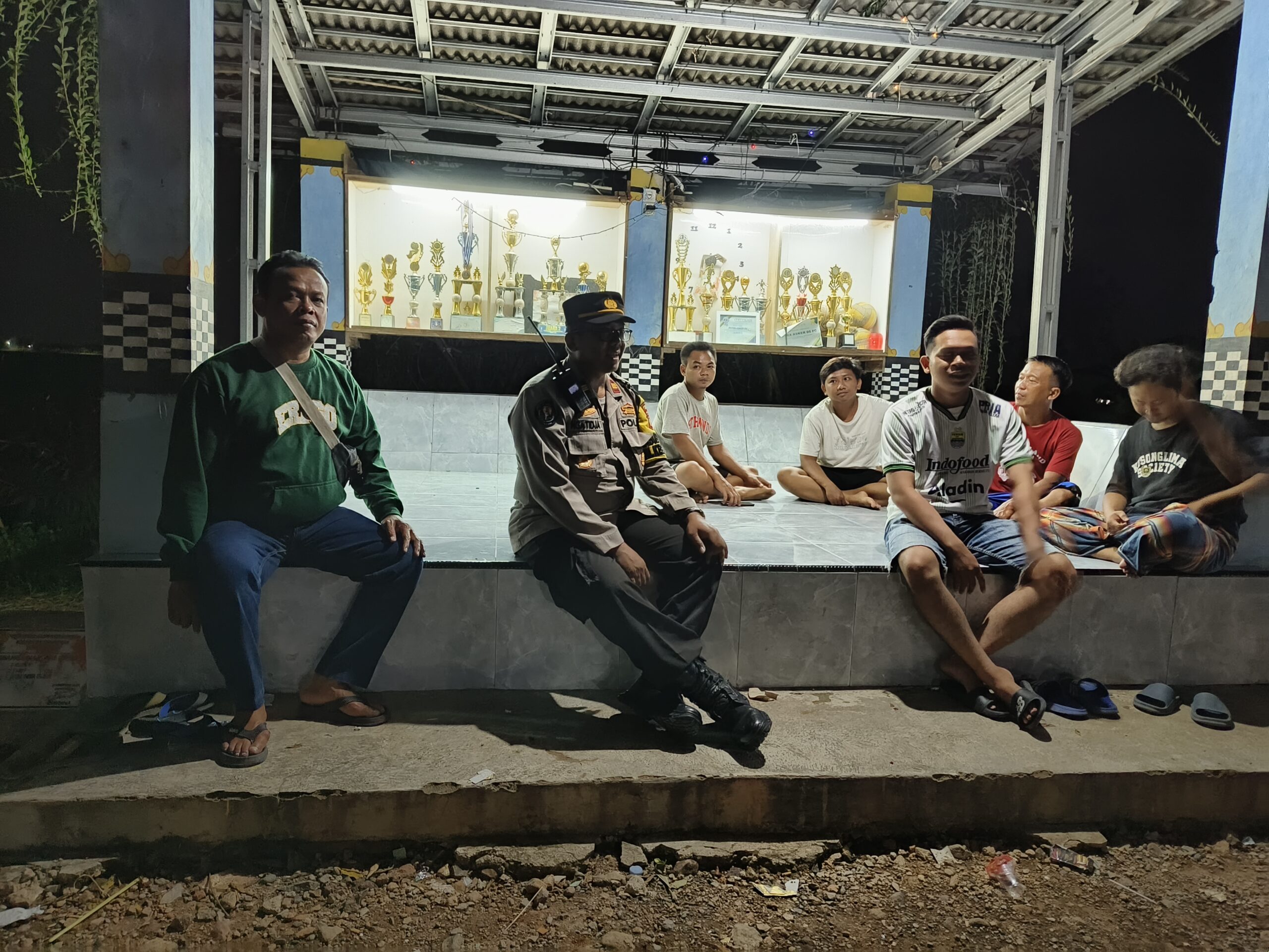 AKP NGATIDJA SH.MH, Kapolsek Klangenan, didampingi Aipda Ajo, berkunjung ke pos kamling di Blok Lima RT 18 RW 10 Desa Kreyo Kecamatan Klangenan, Kabupaten Cirebon, Sabtu dinihari (24/2/24).